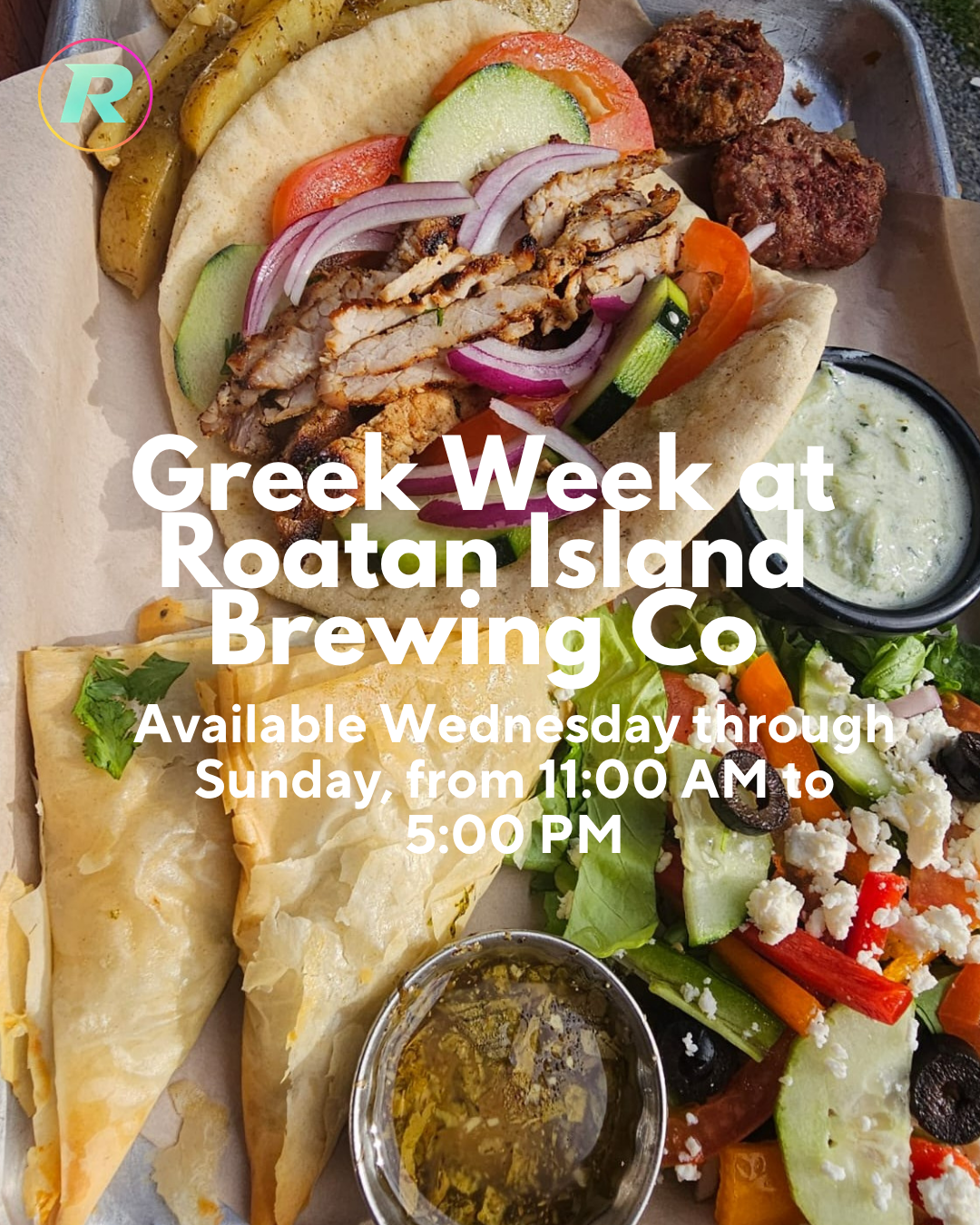 Greek flavors meet Caribbean vibes this week at Roatan Island Brewing Co.🌴